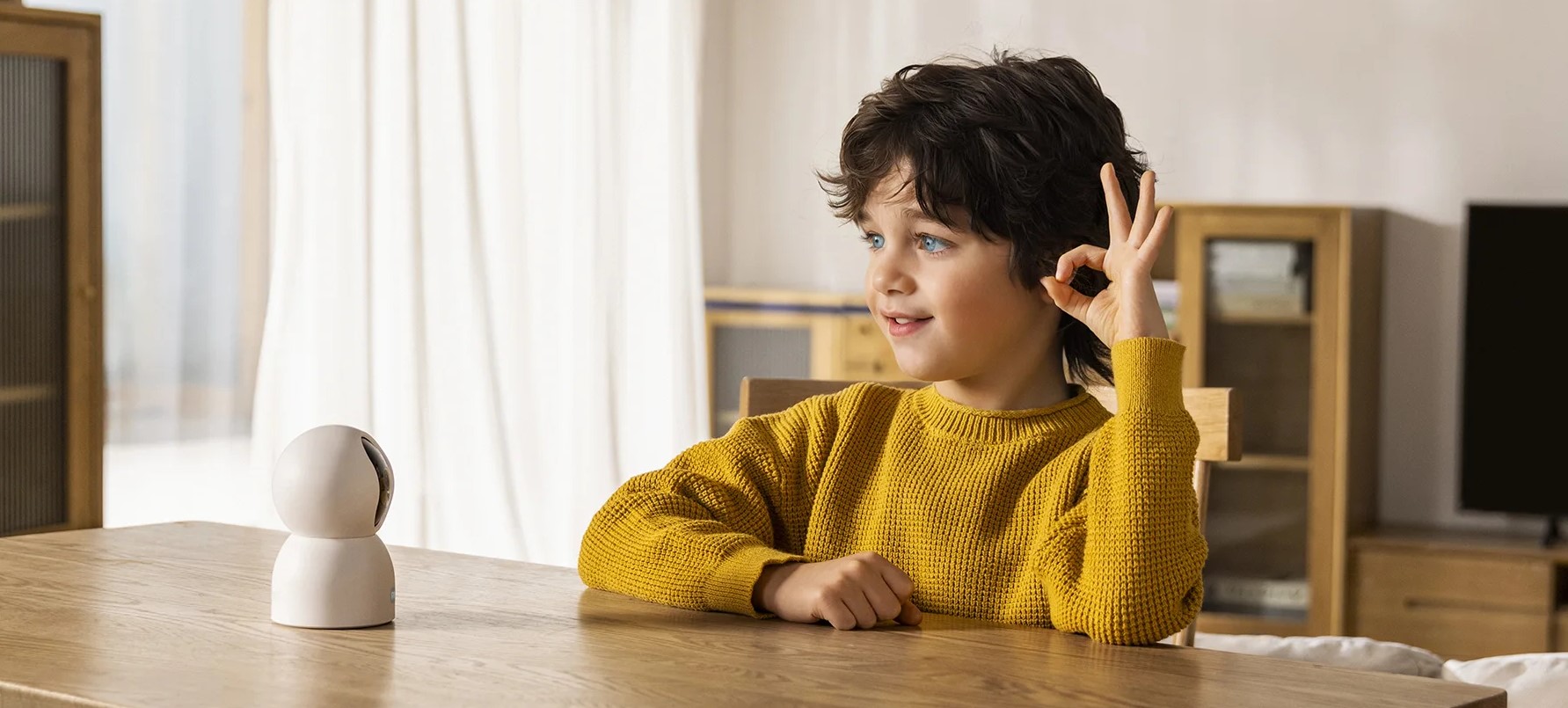 Двусторонние голосовые вызовы между смартфоном и камерой поддерживает распознание жестов. Чтобы позвонить на телефон с камеры, можно сделать жест «ОК» в сторону камеры. Если на звонок не ответят, система сделает бесплатный вызов и отправит голосовое уведомление.